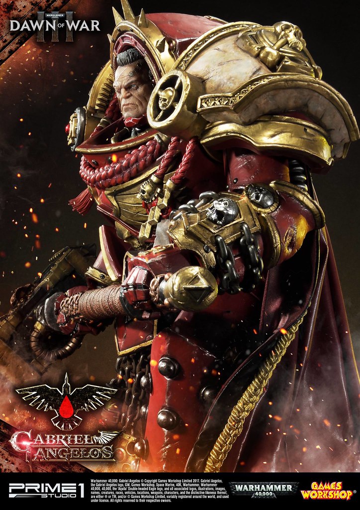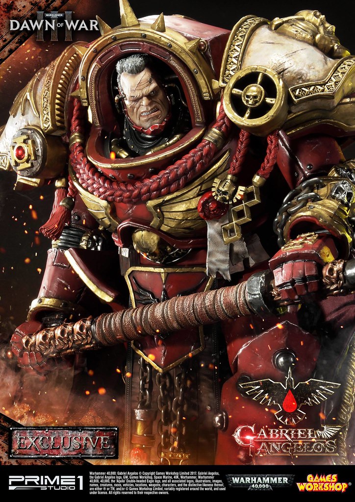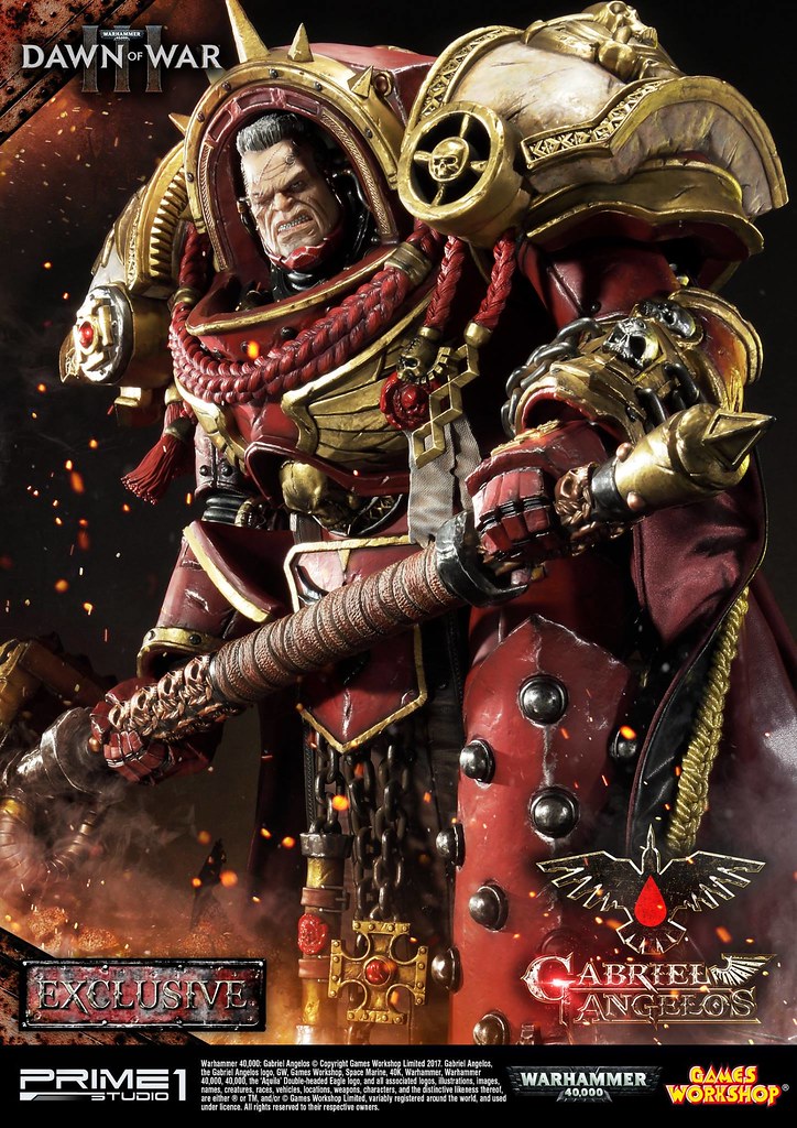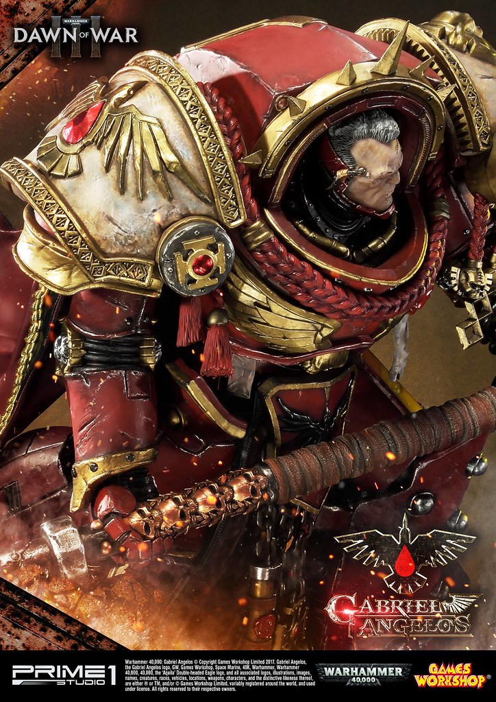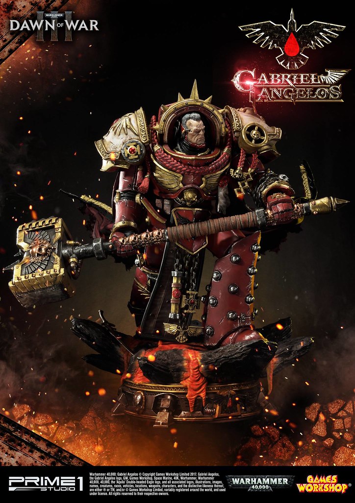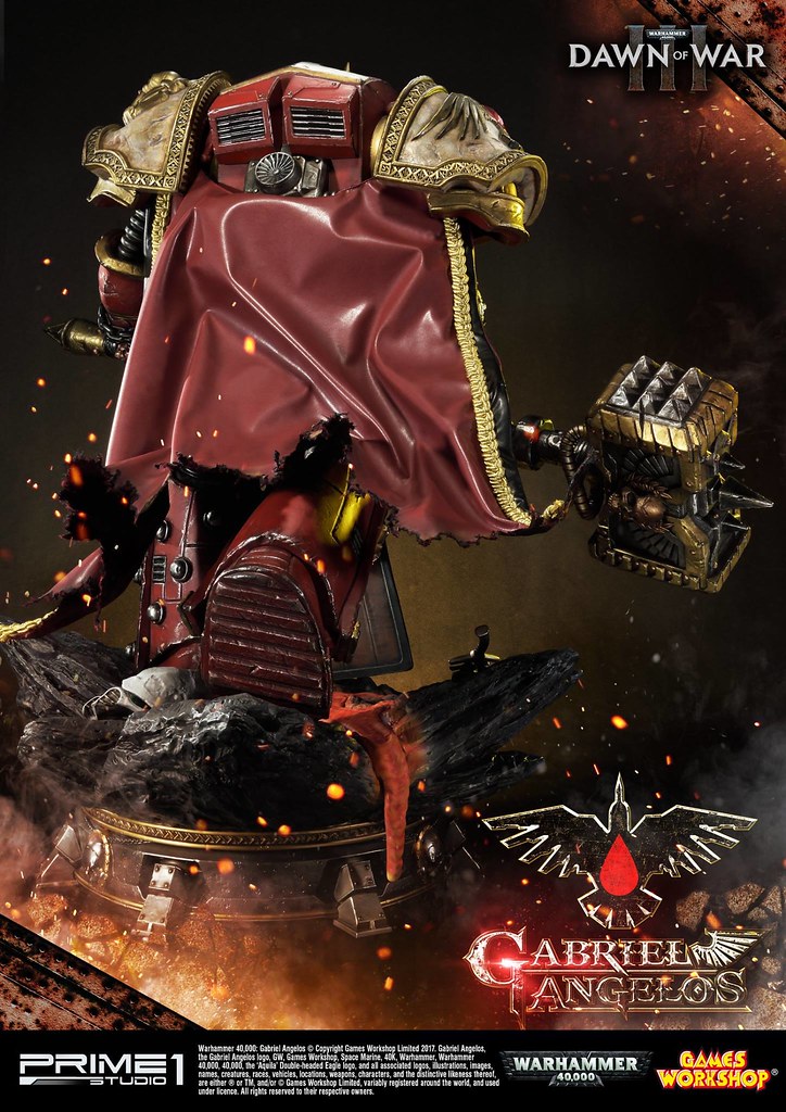 這次所發行的作品,是出自《戰鎚40000 : 破曉之戰》系列的主角,率領著血鴉第三連隊的連長、身著特徵的深紅色終結者裝甲(Terminator Armor),被譽為血鴉戰團歷史中最偉大的傳奇英雄 - 加百列‧安傑羅! 本作將把特徵的終結者裝甲厚重感完全忠實呈現,並強化了遊戲中的造型;粉絲們熟悉的招牌武器 - 鐵鎚“裂神者”(God-Splitter)也以極具震撼的大型尺寸精緻地立體化!