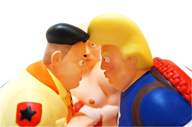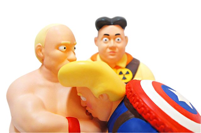相信這三位角色各位玩具人都很熟悉吧!分別是美國總統「川普」(Donald Trump)、北韓最高領導人「金正恩」、俄羅斯總統「普丁」(Vladimir Putin),Make Captain Great Again 穿著美隊的服裝再適合不過,Kim Jong Up 則是身著類似《天外奇蹟》(Up)裡小羅的童子軍裝,Put In 的靈感相信是來自普丁總統裸身騎馬的樣子,還充分展現了「戰鬥名族」的氣魄喔!