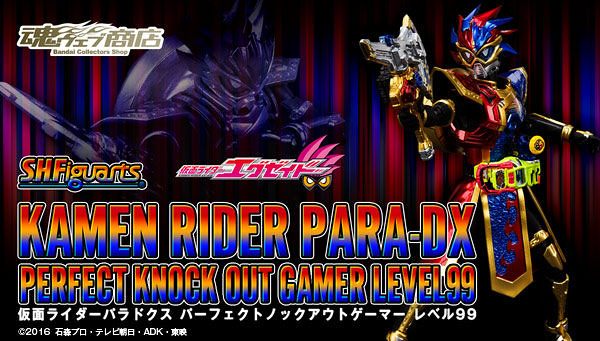 日BANDAI萬代玩具公司暢銷熱賣的S.H.Figuarts可動系列,以《假面騎士EX-AID》特攝劇集為題材推出過「假面騎士EX-AID動作遊戲玩家 Lv.2」、「假面騎士Snipe 模擬玩家 Level 50」等等相關劇中所登場的騎士,近日官網公開將繼續推出「假面騎士Para-DX 完美擊倒玩家 Level 99(仮面ライダーパラドクス パーフェクトノックアウトゲーマー レベル99)」(名稱暫譯)可動作品。