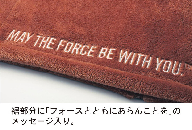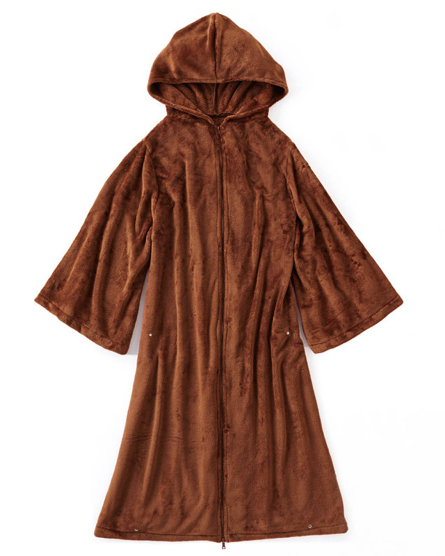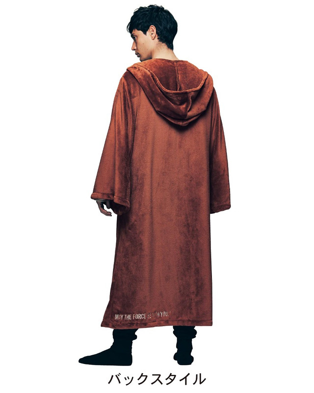 相較於採用類似睡袋的筒狀設計的「寫實圖樣變身毛毯【黑武士 達斯‧維德】」,絕地武士版本採用的是其經典造型的咖啡色長袍設計,使用穿著觸感相當舒適的超細纖維(Microfiber)材質製作,在身體兩側設計了鈕釦構造,能夠將長袍捲起避免拖地污損或因浴室的水漬而弄濕;在長袍的襬邊刺繡「MAY THE FORCE BE WITH YOU.」(願原力與你同在)的經典台詞,玩心十足的設計讓你能夠在家COSPLAY 悠閒度過一整天!~