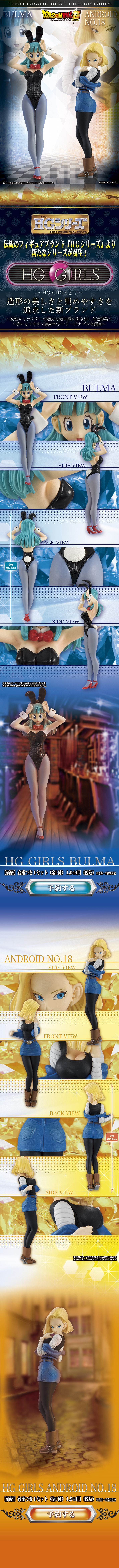 日本BANDAI萬代玩具的轉蛋事業部,旗下的HG (HIGH GRADE,“高等級”之意)系列以《七龍珠超(ドラゴンボール超)》為題材,繼推出「神限定編」、「未來特南克斯編」、「宇宙生存編」與「第7宇宙戰士編」後,近日官網公開將繼續推出「HG GIRLS」嶄新系列將劇中女性角色魅力發揮至極限,首波將推出「布瑪/人造人18號(ブルマ/人造人間18号)」兩款人物的同時推出販售。