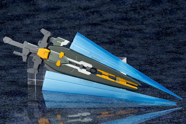 「歐剛巨劍步槍」則可變形為巨劍、步槍模式,並以透明零件再現結晶化的劍刃!當然,施展「歐剛結晶爆裂大劍」時將劍身完全展開成劍柄的機構也有重現!不過可惜的是那比機身還長上數倍的巨大劍刃就無法實體化了~