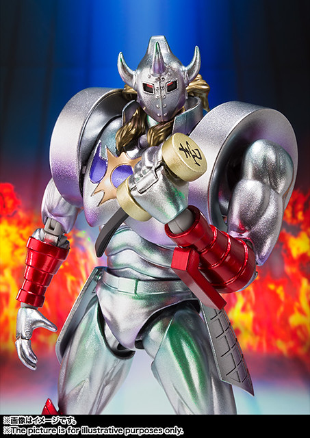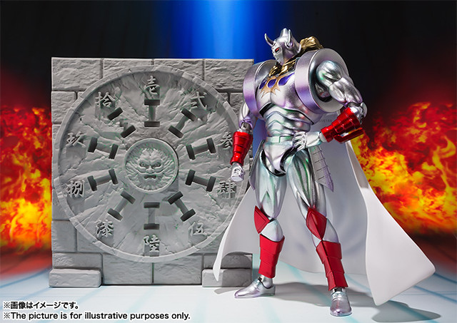 當然這次配色上運用更亮層次的銀色來表現其重厚感覺,在四肢上的紅色也與初版略微不同,同時刺激買氣還多附有「完璧超人始祖編」劇中所登場的特殊"祭壇"以及"啞鈴(ダンベル)"配件,另外還有附交換用頭部、交換用手首左右各2種、武器劍×2等等,此次就沒有附初版的黃金面具,喜愛《金肉人》系列作品的玩具人可以參考這次原創配色版本的惡魔將軍歐!