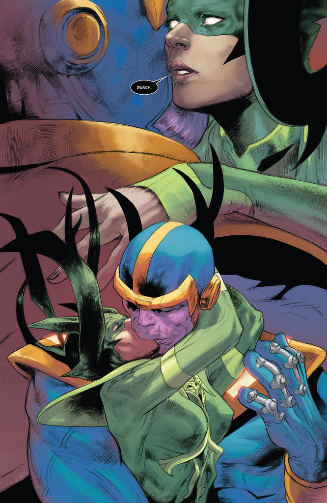 這期間海拉仍造成不少影響,像是跟父親的妹妹,也就是奧丁的女兒-安吉拉產生糾纏,更在最近的故事中為了奪取終極宇宙的雷神之錘,最終成為薩諾斯最"親密"的盟友之一。