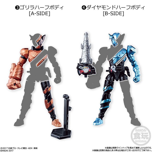 劇中故事主人翁「桐生戰兔」可以使用「Rabbit」和「Tank」滿裝瓶,來變身成為「假面騎士Build 兔子坦克型態(RabbitTank Form)」,這次也將這種二合一的盔甲設計呈現出來,像是"猩猩鑽石型態(GorillaMond Form)"、