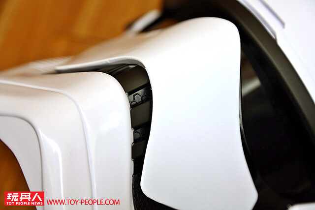 ▼ 面具本體。 雖說是親民價格的遊戲型玩具,但造型還原度還是相當高。各位玩具人注意到了嗎?這次的第一軍團風暴兵面具可是改版過的喔!在這集《星際大戰:最後的絕地武士》中,第一軍團風暴兵的面具多出了黑色的齒狀結構,與帝國風暴兵的嘴部造型相當近似。