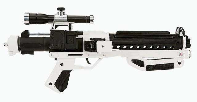 ▼ F-11D 爆擊步槍與過去帝國風暴兵制式配備的E-11 爆擊步槍最大的改進在於將動力電池(Power Cell)改到右側,這樣就能把槍枝裝備在慣用手的右大腿外側。