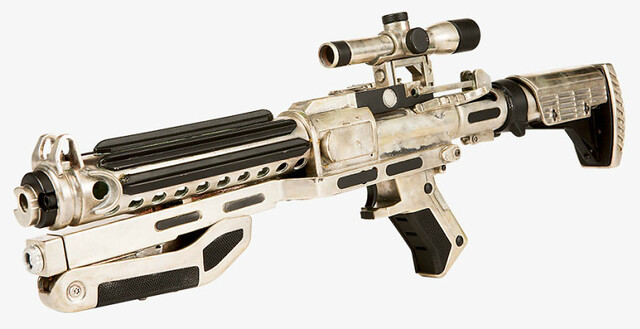 ▼ 跟電影道具比一比就知道這還原度有多高!上圖是第一軍團風暴兵標準配備的Sonn-Blas F-11D 爆擊步槍(無槍托),下圖則是法斯瑪隊長客製版的精煉鍍鉻外殼版本(有槍托)。