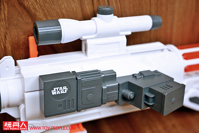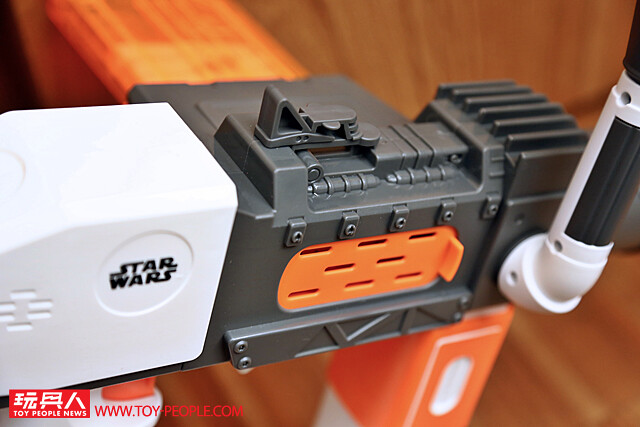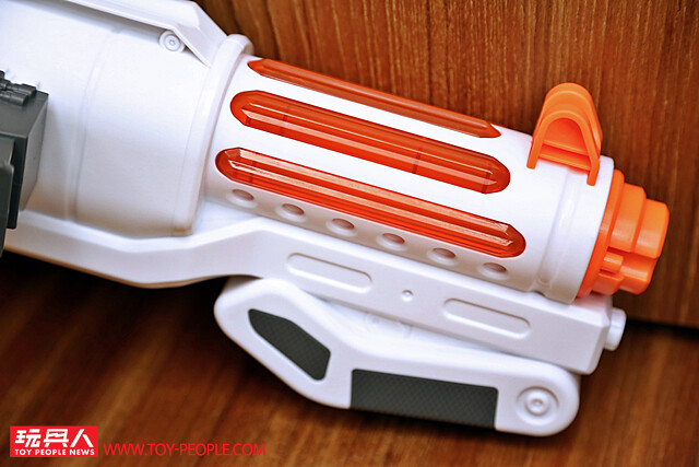 ▼ 《星際大戰:最後的絕地武士》第二款NERF作品,是第一軍團重裝突擊兵(Megablaster heavy assault trooper)所配備的「FWMB-10 速射爆能槍(repeating blaster)」射擊器。