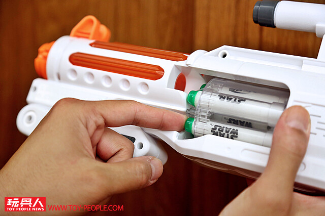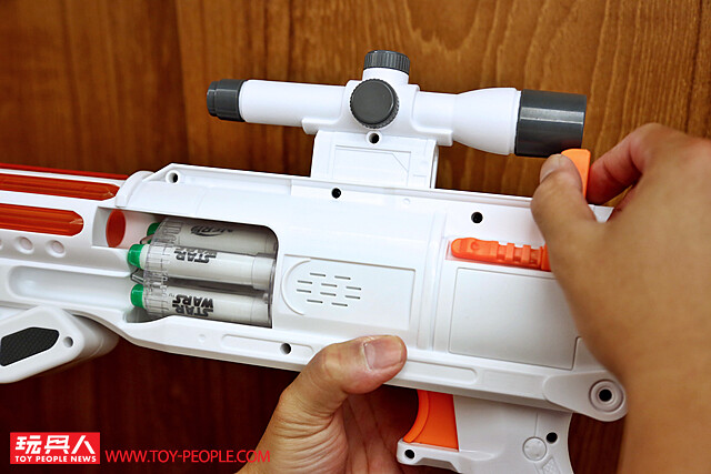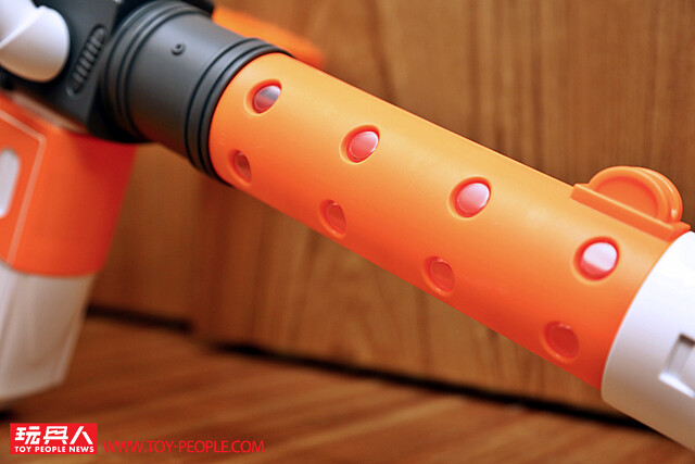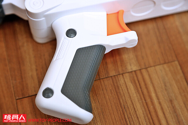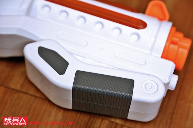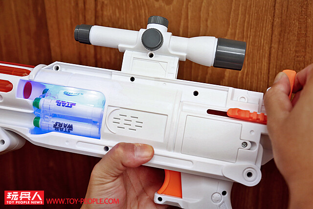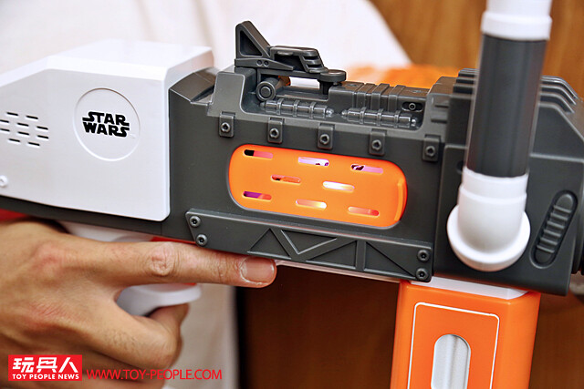▼ 這一款重裝突擊兵射擊器一共擁有兩個扳機,食指位置的扳機扣壓之後就會發出聲光效果,包含了電影中實際運用的FWMB-10 速射爆能槍音效,以及槍管會有射擊的燈光效果,光是這樣就很好玩啊!~