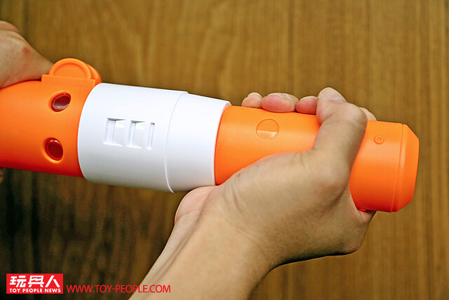 ▼ 這個時候扣壓扳機並不會發射子彈,會發出電影中實際使用的爆擊槍射擊音效,並且槍管會有射擊的燈光效果,就算不用發射子彈也能體驗爆擊槍射擊的樂趣~