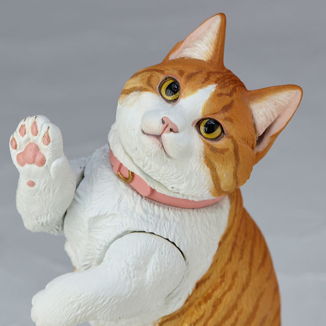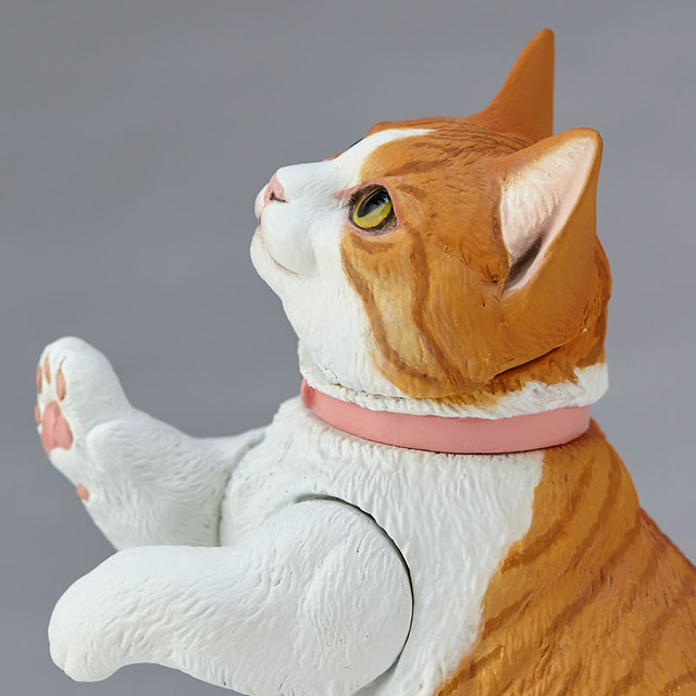 這次推出的「貓 / 曼赤肯貓」是由海洋堂首席的動物原型師松村忍(松村しのぶ)擔任原型製作,透過精湛的造型技術將曼赤肯貓特色的短腿、家貓鮮明的毛色、略胖的體型及項圈都忠實再現!粉紅的肉球真得豪可愛呀~!此外在可動部份也下了十足功夫,隨著關節的轉動,不同的角度能做出「四角走路」、「雙腳站立」等,動作就和真正的貓咪一模一樣呀!