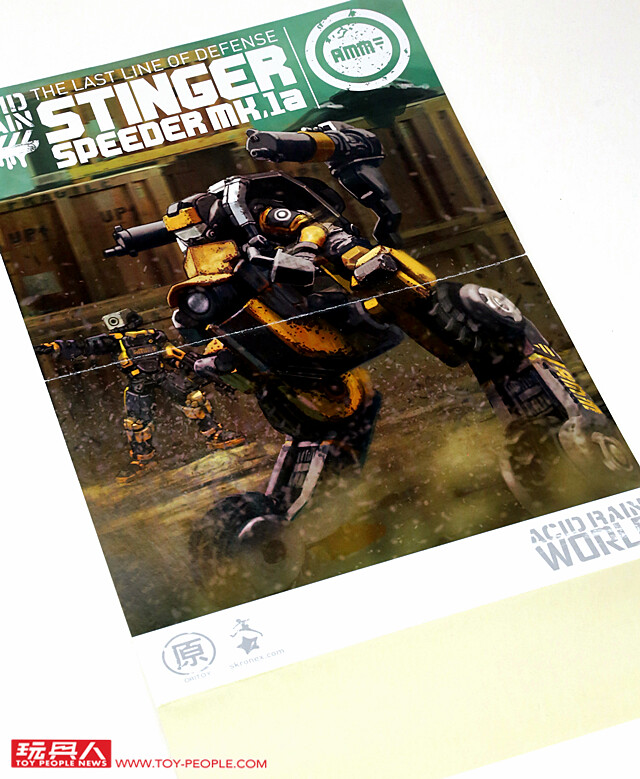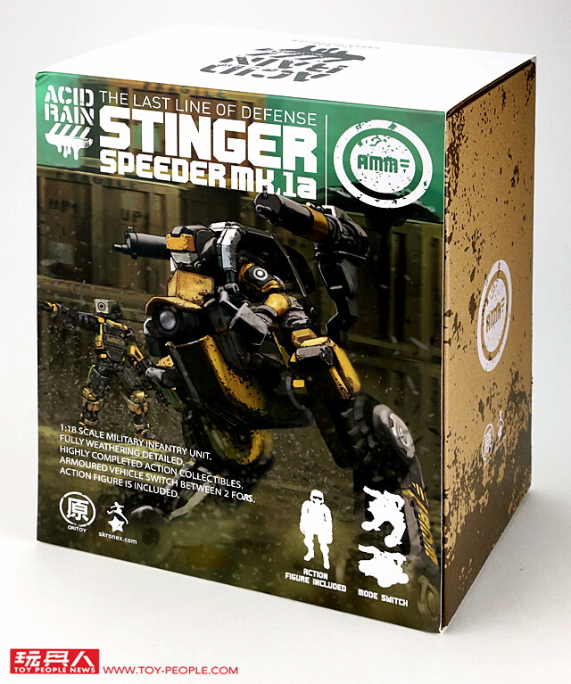 近年來在海內外玩具收藏市場相當火紅,擁有許多狂熱粉絲支持並且成功炒熱3.75吋收藏人偶市場的Ori Toy《酸雨戰爭》系列,繼去年推出了讓酸雨迷們搶購的話題作品「私人企業護衛團:AMM 黑蜂部隊」之後,今年再度延續了AMM 黑蜂部隊的熱潮,推出了該人氣部隊的首款載具 - “毒刺機車 MK.1a(Stinger Speeder MK.1a)。