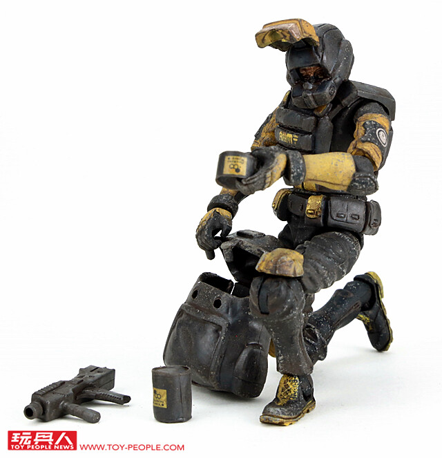 ▼ 除了醒目的警告配色之外,手臂的位置也配置有黑蜂部隊的徽章;戰場上士兵們的裝備本來就大同小異,但是Kit Lau 老師用心地交換配件、更動配色,讓每一隻部隊都擁有截然不同的差異性,相當地寫實啊!