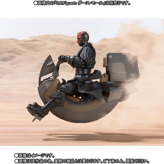 在《星際大戰首部曲:威脅潛伏》當中所登場的反派西斯武士「達斯魔(Darth Maul)」,他是達斯·西帝(Darth Sidious)的徒弟,武器是一把特殊雙刃紅色光劍,之前日Bandai玩具公司暢銷熱賣的S.H.Figuarts可動系列推出過「達斯‧魔」精彩的可動作品,近日官網在公開將推出其專用的載具「Sith speeder」西斯飛行器(名稱暫譯)的商品宣傳照片與販售資訊。