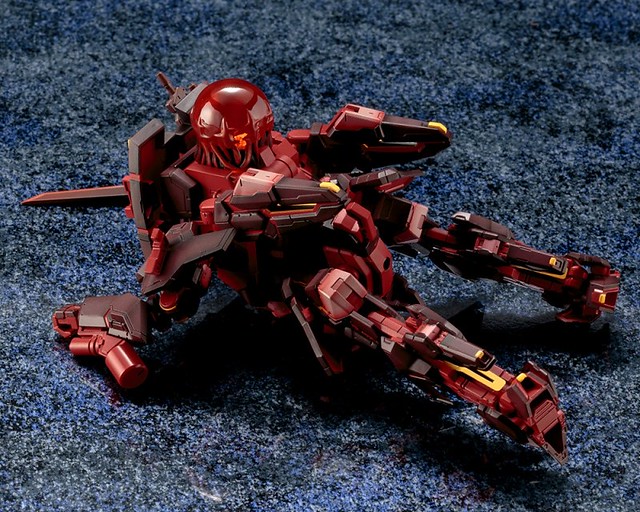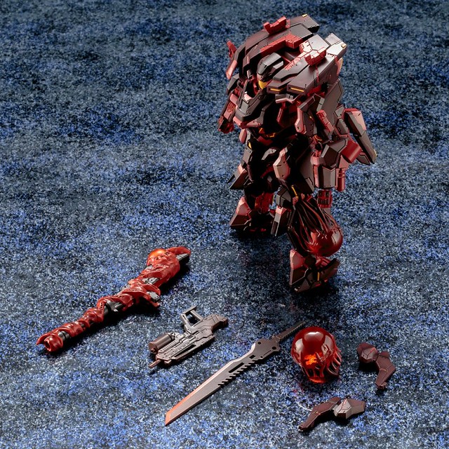 雖然是同一架機體,但在套件大幅改色後,整體層次的顯現與壓迫感是大不相同!雙腳與背部特徵的「侵蝕核」以新規零件呈現,配件中除了標準武裝「光子劍」、「機槍」外,更附有被侵蝕的光子發射器、造型超精緻的「達卡(ダガン)」一隻,整體搭配起來實在有夠帥呀~!