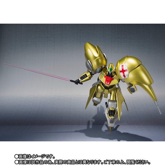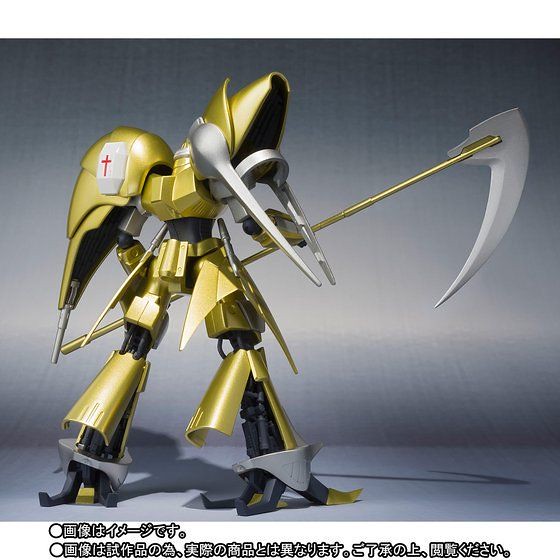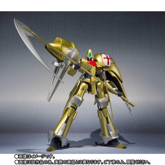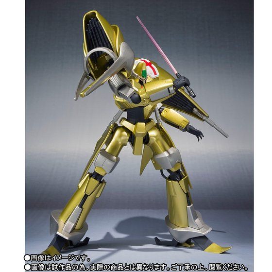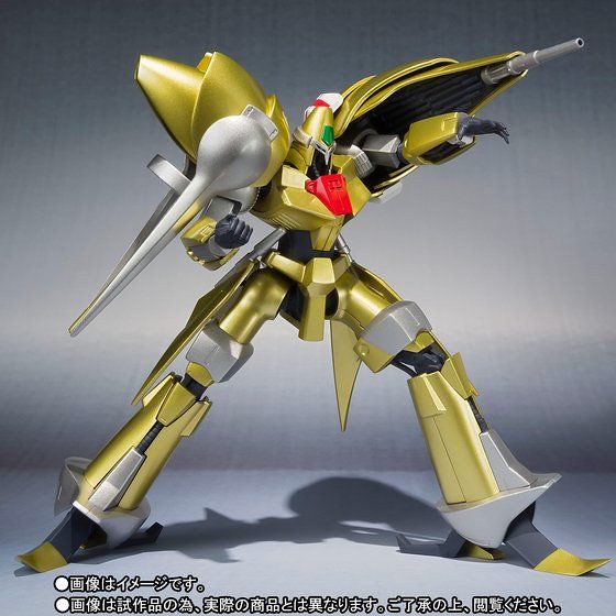 日Bandai萬代玩具公司的「ROBOT魂」可動系列以動畫《重戰機》為題材,已經推出過紅色機體的「NOVEL D-SSERD」、白色機體的「L-GAiM」以及黑色機體的「Calvary Temple近衛隊Ver.」後,近日於官網公開劇中"最強的敵人"「奥津/AUG(オージ)」(名稱暫譯)特別金色的機體。