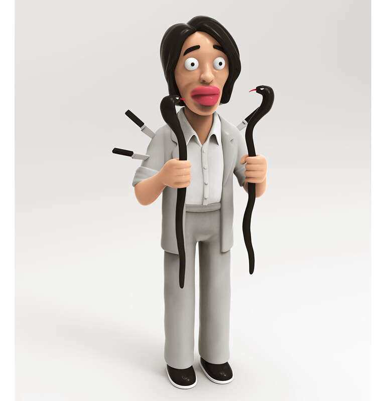 來自電影中的主角「阿星」,身上滿滿的小刀、手握毒舌、嘴唇腫得跟香腸一樣,相信是來自電影中阿星與排骨要偷襲包租婆的橋段,那嘴唇實在太傳神了~