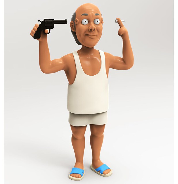 來自電影中的終極殺人王「火雲邪神」,既然都可以輕鬆解決掉武林高手「楊過&小龍女」,擋子彈當然只是小事啦~標準的阿公內衣配拖鞋,一手拿槍一手夾子彈,但這蛤蟆王看起來可真是親和度+10 啊~