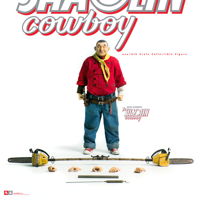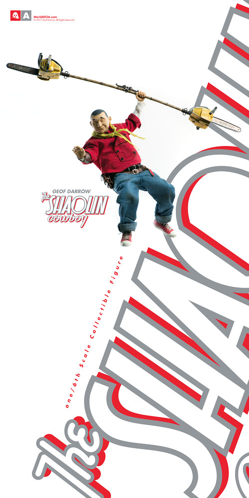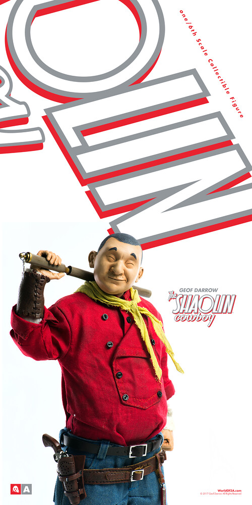 致力於跨品牌設計、作品以強烈風格聞名的香港知名玩具廠牌threeA 與擅長呈現極致細節的美國漫畫大師「Geof Darrow」合作,將Geof Darrow 筆下知名漫畫作品《少林牛仔》(The SHAOLIN Cowboy)中的少林武僧立體化,製成1/6 比例的可動人偶作品,現正開放預購,預計將於2018年第二季發貨!!