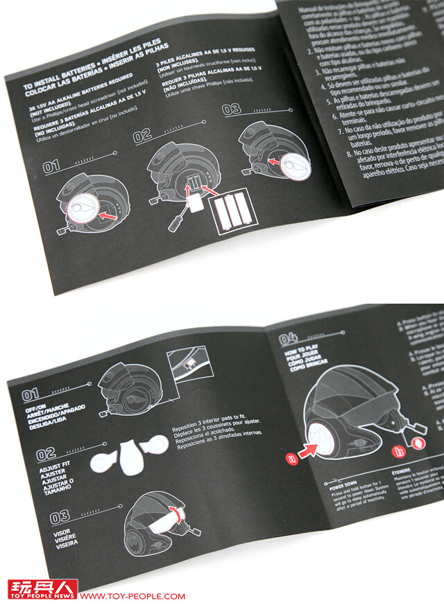 ▼ 說明書詳盡的圖文介紹了電池的安裝、開關操作與配戴調整的說明,各位玩具人記得開始開心把玩之前先詳細閱讀呀~