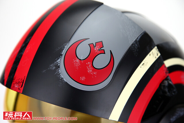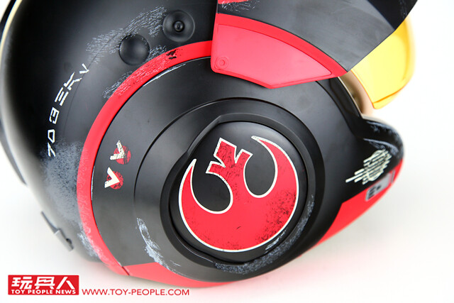 ▼ 接下來讓我們欣賞一下頭盔上的造型細節吧。 反抗軍同盟所使用的象徵標誌「同盟星鳥(Alliance Starbird)」,在反抗軍於恩多戰役推翻了銀河帝國之後,由莉亞將軍等舊部,為了對抗帝國殘黨“第一軍團”,而建立了一隻小而私密的軍隊 - 抵抗勢力(Resistance),繼續沿用了這個同盟星鳥徽章。