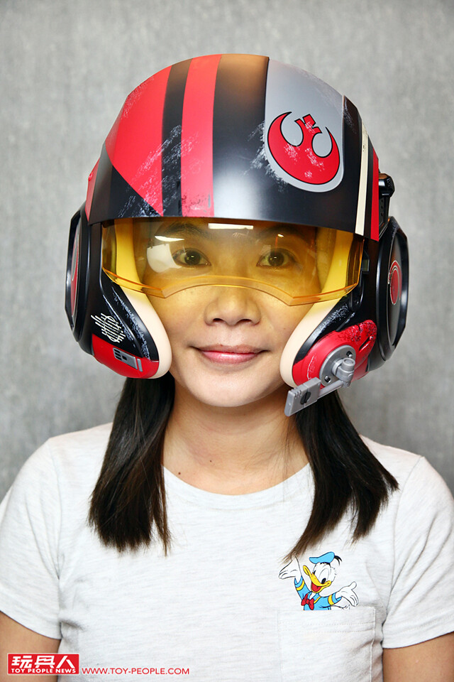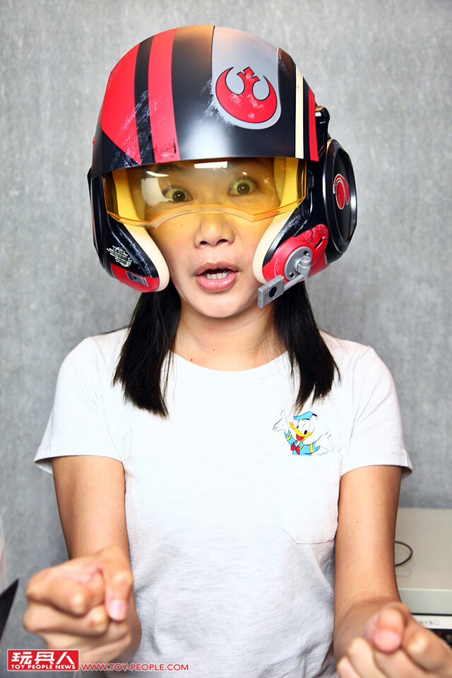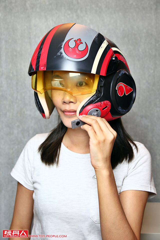 ▼ 逼真的音效效果,讓你彷彿化身為X翼戰機的王牌駕駛穿梭於激烈空戰中~ 除了多種空戰音效之外,在左側臉頰部位隱藏著麥克風,如果配戴者說話的話,波的忠心搭檔BB-8 也會對你說話回應喔!~