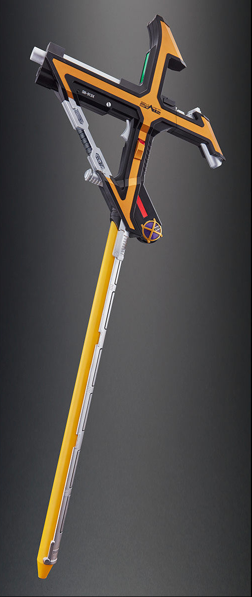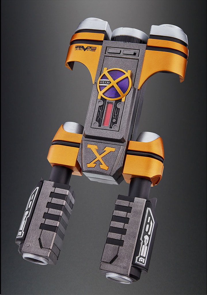 強化裝備之一的「Kaixa Pointer」具有望遠鏡模式、踢擊模式兩種型態,與腰帶進行無線連動就能發動必殺技「Gold Smash」,前端還能照射出必殺技發動後的「X」記號!