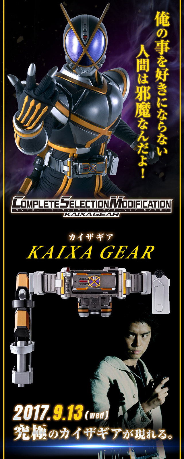 由日本萬代玩具公司推出,專為成人而設的《假面騎士》變身腰帶【COMPLETE SELECTION MODIFICATION(CSM)】系列今(13)日發表了最新商品,來自《假面騎士555》的「CSM Kaixa Gear」預計於 2018 年 03 月發售的消息。(發表日期9.13正好是Kaixa的日文諧音!)