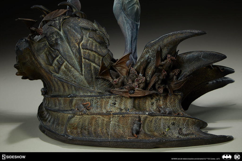 「高譚市夢魘 蝙蝠俠」結合了蝙蝠俠原本的形象、以及蝙蝠的生物特徵,創造出一種超現實的可怕生物,最明顯的就是原本的披風變成展開的蝙蝠翅膀,而蝙蝠戰衣上的紋路彷彿直接變成軀體上的肌肉線條,在魔鬼石像地台也加了許多可怕的元素,像是爬滿地的蝙蝠、老鼠和蜈蚣;值得一提的是限定版更追加一個充滿魔性的蝙蝠頭雕,看起來更加邪惡了~
