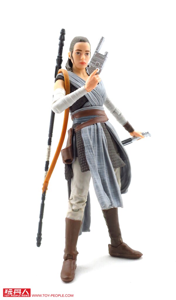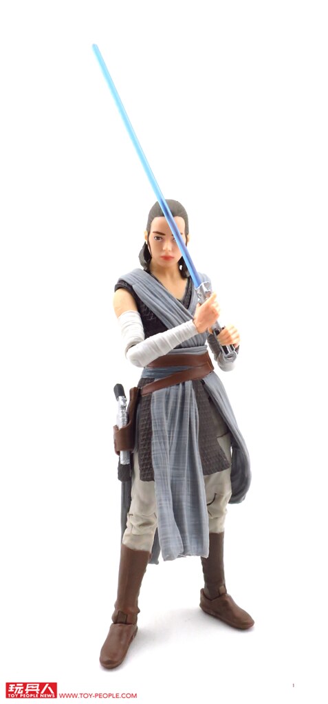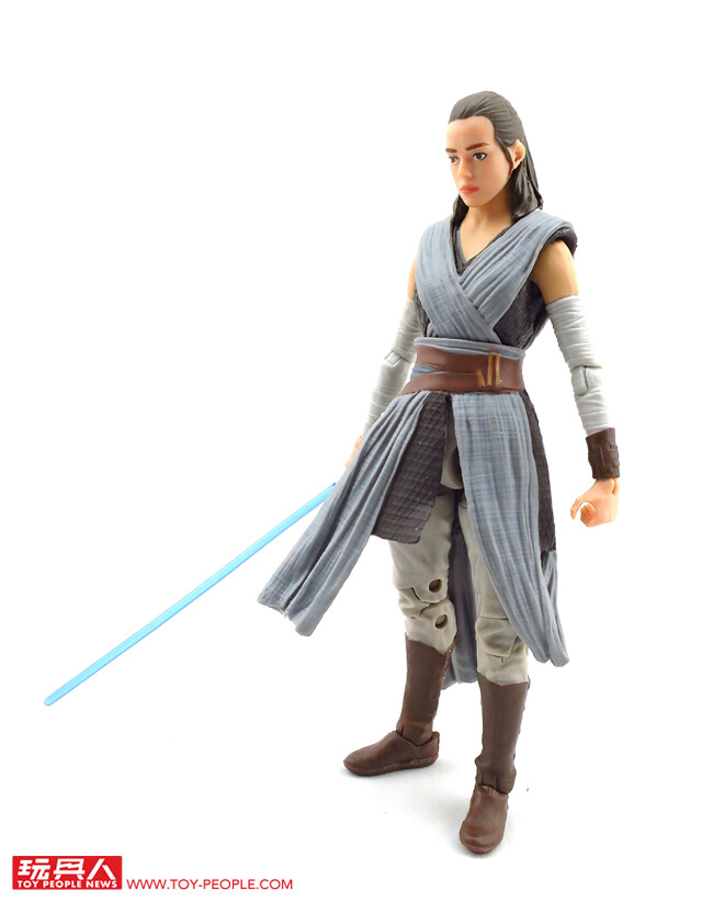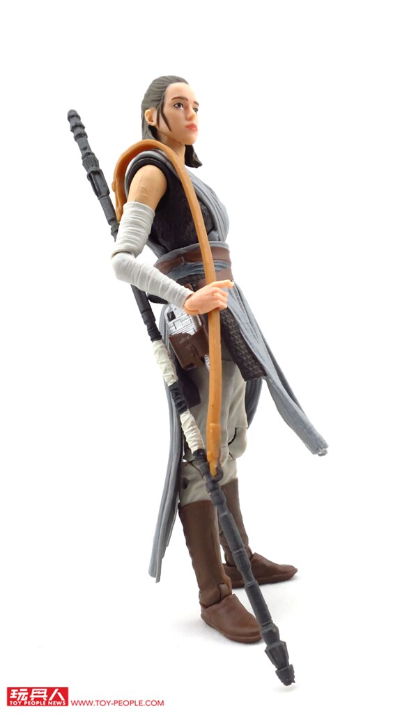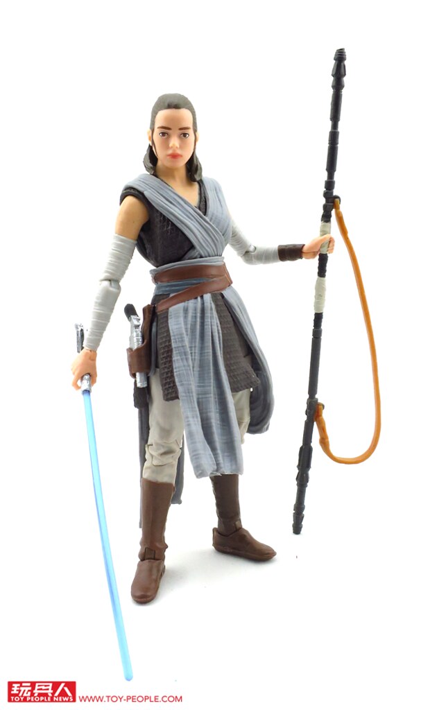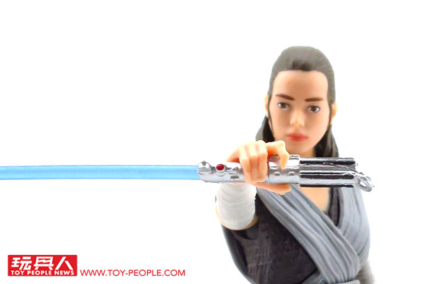 ▼ 有別於上一集在賈庫星(Jakku)風塵僕僕的造型,這次的芮在衣著上顯得颯爽許多。除了招牌的武器長鐵棍(Quarterstaff)外,韓·索羅(Han Solo)給予的NN-14爆能手槍和光劍也都有附屬在內。