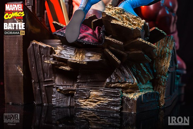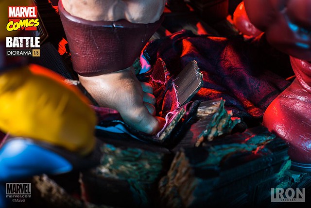 這次的雙雄對決給人強烈震撼的視覺效果,平常壯碩又魁武的金鋼狼,在紅坦克旁邊也變得像個小不點~Iron Studios 完美地展現了紅坦克那來自邪神「Cyttorak」賜予的無敵力量,與浩克相比有過之而無不及的誇張肌肉,裸露出來的雙臂也佈滿青筋,全身上下穿著深淺不一的紅色服裝和可以抵抗心靈入侵的巨大頭盔,紅坦克整體的造型相當搶眼。