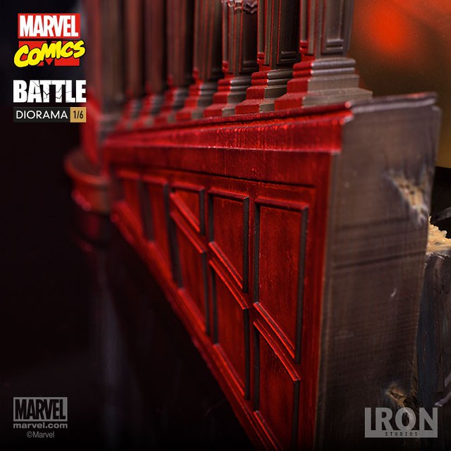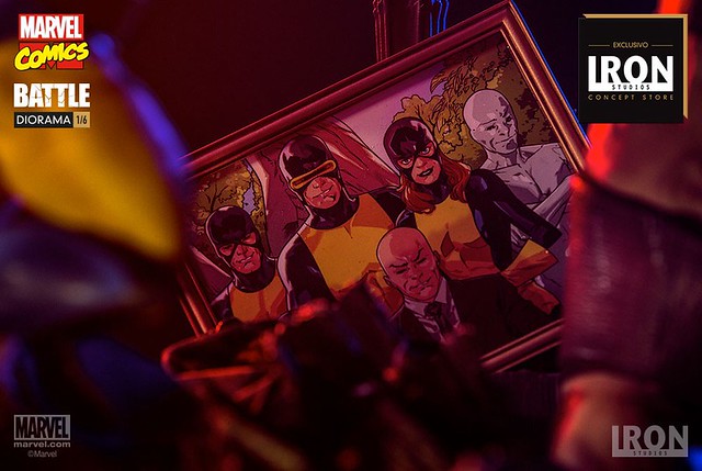 除了兩位充滿造型力的英雄之外,決鬥的場景地台也藏有驚喜,以高水準的手工上色呈現出木製樓梯殘破的質感,逼真的刮痕、木紋搭配布料地毯好寫實啊~而在概念店限定版中,更追加了「X 戰警」創始成員的相片,這麼經典而且感人的要素大大提升了收藏價值,如此高水準的作品實在錯過可惜!!