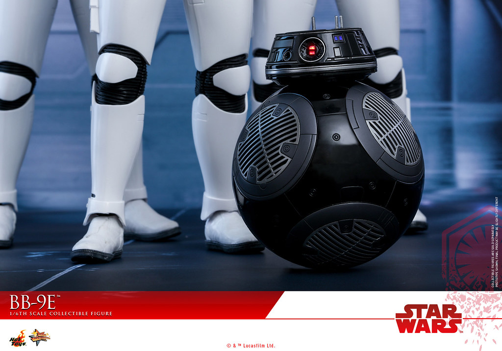 與MMS440 BB-8相同,BB-9E 同樣導入了特殊的自我平衡機能(self-balancing mechanisms),以及使用磁鐵吸附、LED發光機能的頭部,並且將完整地重現原作設定中的黑、銀配色。 各位喜愛收藏銀河帝國部隊&第一軍團的星戰迷們,怎能錯過這個反派勢力所屬的機器人呢?!