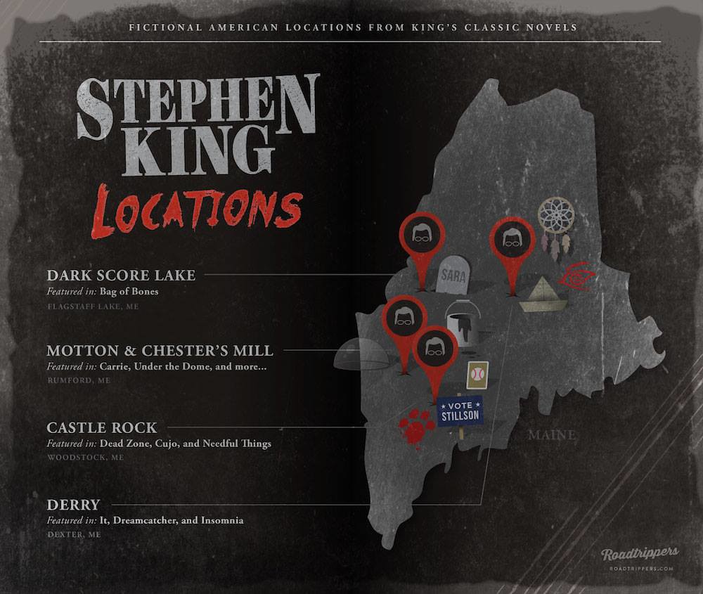Mainstream Universe(主要世界)-史蒂芬金大多數故事都發生在這世界的緬因州四個地點,分別是德利小鎮、撒冷地、城堡岩、避風港鎮。以下是設定在此世界的作品(只列了大約四分之一不到的部分):
