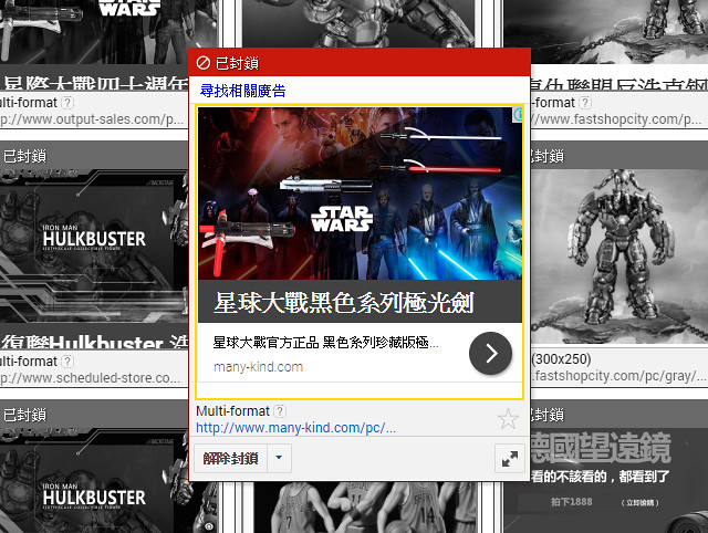 ▼ 比方說:你喜歡STAR WARS,你曾瀏覽、搜尋過相關的STAR WARS 網頁,你就有可能在各大網站看到以下這則星戰光劍的詐騙廣告。