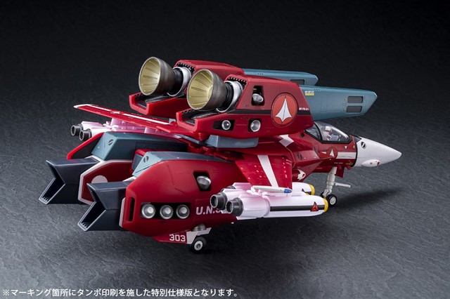 此次機體是以ABS、POM、亞鉛合金等等複合性材質來製作,機體都可以裝上各式武裝的配件,同時完整呈現劇中三段式變型的各種模式,除了可拆的武裝配備外,還有附各種外掛飛彈、駕駛員等等大量豐富配件,兩款作品都將於ARCADIA的官方網站限定販售,一般通路版本的武裝略為有些許不一樣,喜愛《超時空要塞》動畫系列的玩具人可以參考一下歐!