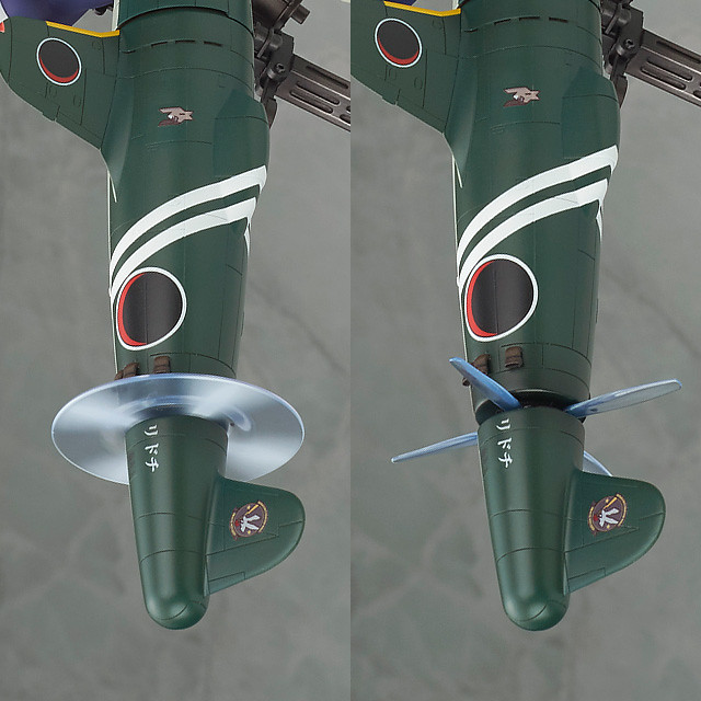 「雁淵光 1/8 比例模型」將充滿危機感的臨戰之姿立體化,小光嚴肅的神情讓人感受到她的根性,專注地操控著飛行腳「試製紫電改二(千鳥)」。飛行腳上具有寫實的裝甲線與機身標誌等細節,螺旋槳則附有停止/運轉兩種樣式可替換。小光手中的航空機砲「九九式二號二型改」則施以高質感金屬塗裝,呈現機械般的厚重感!