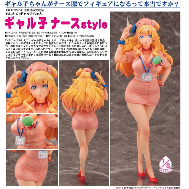 相當受歡迎的大人氣動畫《百無禁忌!女高中生私房話》,這次將由日廠AQUAMARINE來推出其故事主人翁「辣妹子 護士服造型(ギャル子 ナースstyle)」版本,以約1/8比例尺寸的上色完成品來呈現,造型是以應援捐血活動海報作為設計,將辣妹子身穿粉紅色護士服的模樣,口袋有著棒棒糖與手臂上有鮮豔手環等等都相當仔細地立體化。