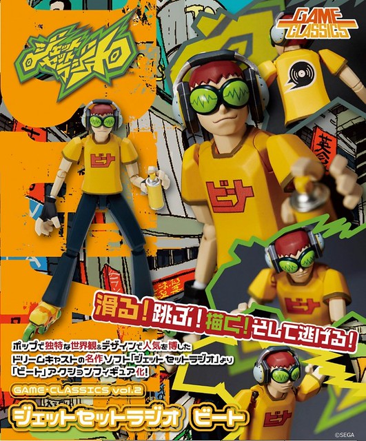 日廠Union Creative以「GAME・CLASSICS」系列將電玩遊戲的角色人物可動化,第一彈公開過《魔界村》的「亞瑟」後,近日繼續公開其系列的第二彈將推出早期特殊的3D漫畫風格的電玩遊戲《噴射廣播電臺》ジェットセットラジオ/Jet Set Radio(名稱暫譯),當中由玩家操作的角色人物「節奏(ビート)」(名稱暫譯)。
