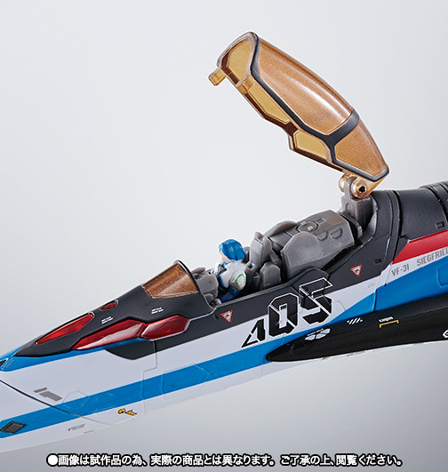 「DX超合金 VF-31J改 齊格菲(疾風·因梅爾曼機)」本體與過去發售的「VF-31J」相同,塗裝則改為加入梅薩黑的外觀並印上「死神」標誌,另外裝備於左右兩側的武裝「大型飛彈」也是首次登場,不論是單機或裝備另售的「超級背包擴充套件」後都能搭載!