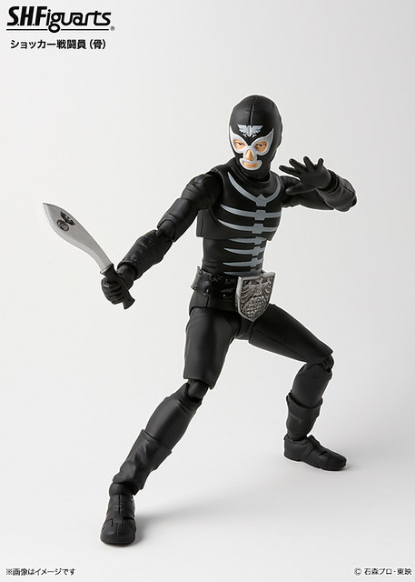 日廠BANDAI萬代玩具公司的S.H. Figuarts 可動系列,以假面騎士為題材推出過多款精彩又受粉絲們歡迎的角色作品,於2013年7月曾經推出過「修卡戰鬥員」後,近日官網又繼續公佈將推出「修卡戰鬥員(骨)」ショッカー戦闘員(骨)的情報宣傳照片與販售資訊,在《假面騎士》特攝劇情當中,一直默默犧牲奉獻、無怨無悔支持著邪惡秘密組織的"修卡戰鬥員"鮮少台詞都只會發出「逼逼逼逼逼.....」的應答聲音。