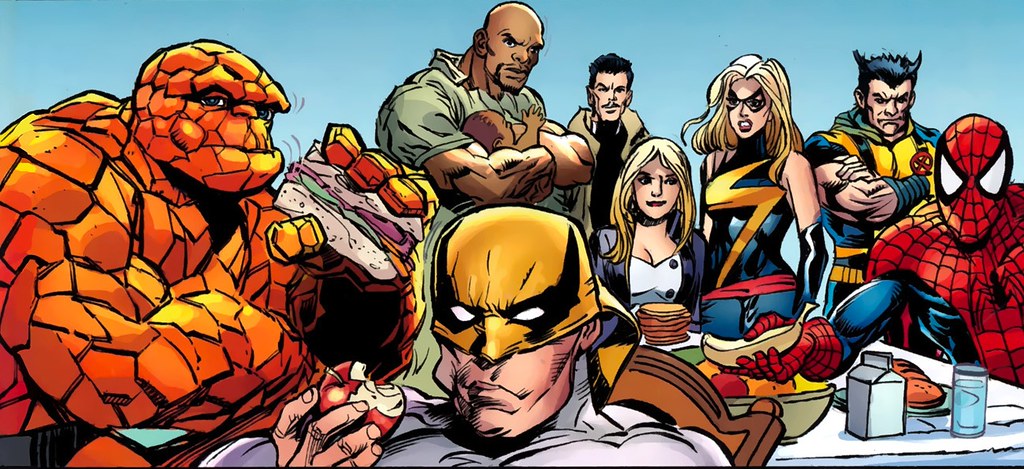 漫威宇宙最主要的英雄團體,最早是洛基為了對抗索爾於是控制浩克,然後浩克的朋友里克瓊斯原本打算透過廣播想找驚奇四超人幫忙,結果反而讓鋼鐵人、胡蜂女、蟻人收到訊息,五位英雄合作打敗洛基,於是決定效法驚奇四超人組成一個團隊,於是復仇者聯盟就此誕生。而隨著時代的變遷,復仇者聯盟成員變來變去,許多漫威英雄都有加入過,團隊本身就具有一個強大的象徵性,也因此產生許多分隊和平行世界版本。