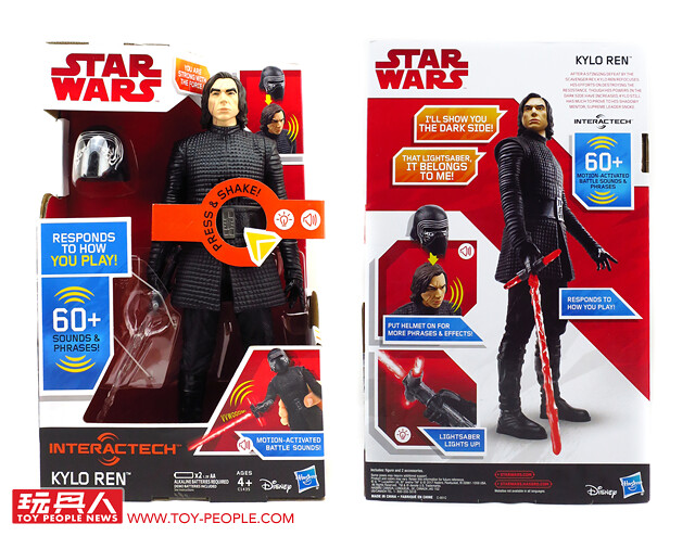 最後要分享的,則是出自於「12吋互動式電子英雄人物」(Interactech)的「凱羅·忍」(Kylo Ren)。在七部曲《原力覺醒》中表現搶眼的凱羅,這次終於能以更華麗的聲光效果登場,12吋互動式電子英雄人物收錄了非常多樣的台詞音效,不論是單純的按下開關、拋接、步行或是拿起來揮舞光劍,都能隨著把玩方式的不同而呈現不同的效果,再搭配上頭盔的穿脫亦會講出更多不同的台詞,就如同盒子上的標語「你怎麼玩、他就怎麼反應」,可說是擁有超多元玩法的互動人偶,喜愛凱羅·忍的粉絲絕對不容錯過!