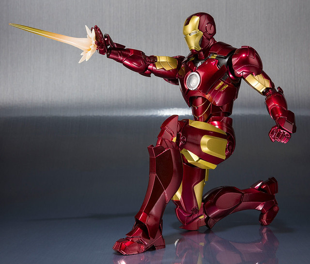 「S.H.Figuarts 鋼鐵人馬克4」高約15 公分,不但完整重現電影裡的樣貌,把玩性也非常高!盔甲的紅、金塗裝十分細緻,胸口的圓形反應爐也忠實呈現,而除了原本的馬克4 面罩之外,還附有東尼的替換頭雕,戴著太陽眼鏡的版本實在太有趣了,還包含多個替換手,背、大腿部分的替換零件,再加上招牌的噴射特效件就能還原許多鋼鐵人的帥氣姿態;最有趣的配件當然是那盒甜甜圈啦~還有分口味欸,想演繹各種爆笑的情況劇絕對很派得上用場啊!!