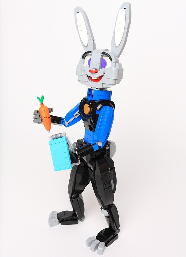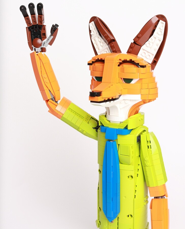 樂高玩家「Sheo」將這兩位角色樂高化的同時也保留了他們的外觀特徵,像是超萌的身高差、服裝顏色的使用搭配、雙眼的神韻等等,茱蒂藍紫色的雙眼顯得炯炯有神、幹勁十足,尼克下垂的眼睛就顯得慵懶許多~茱蒂的警徽、警察制服都呈現得唯妙唯俏,還有超可愛配件「胡蘿蔔筆&筆記本」,尼克則忠實呈現了手長過膝的設定,毛色也做出了深淺不一的差異,尖尖的嘴型、萊姆綠的上衣、藍色領帶也精巧還原。