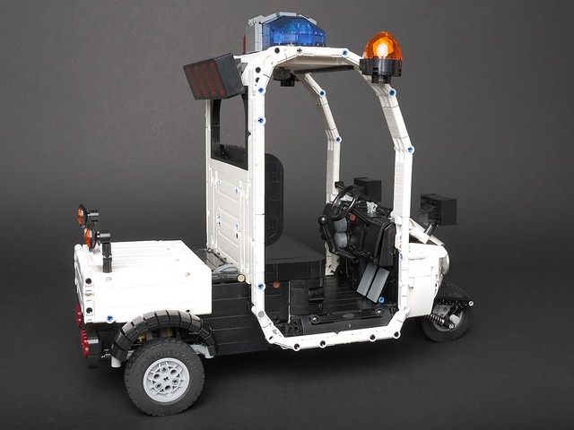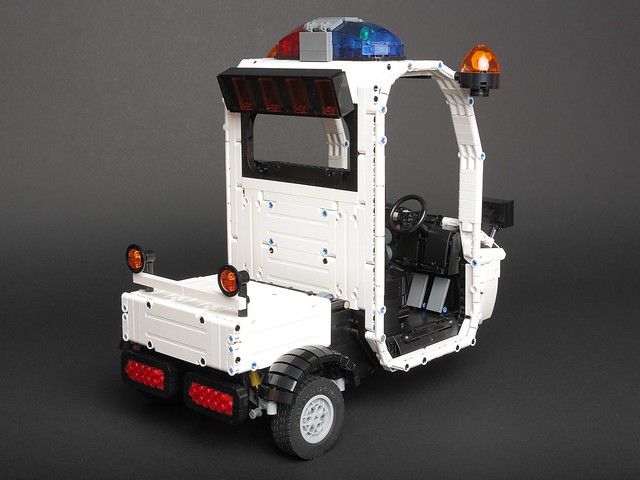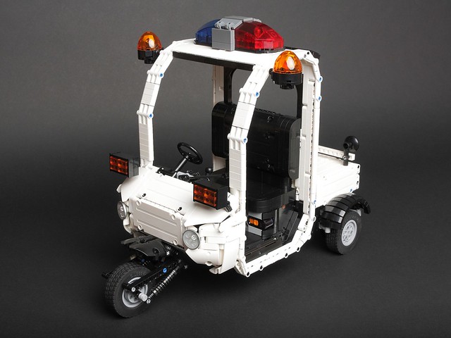 再來就是茱蒂執勤時駕駛的可愛三輪警車,除了車體形狀的高度還原外,科技磚的使用也十分厲害,許多小細節更是精彩!弧形車架,車頂的藍、紅警示燈,橘色照明燈,方向盤、駕駛座的踏板等都非常精緻,小編也好想做一台啊!搭配他自製的茱蒂一定超可愛,目前「Sheo」的這兩樣作品都刊登在「LEGO IDEAS」的頁面上,喜歡的玩具人可以去支持一下歐~~