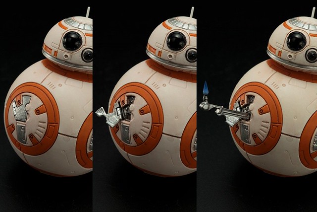 「ARTFX+ 波·戴姆倫 & BB-8」的波高約18 公分,BB-8 則高約6.6 公分,波複雜的飛行員制服完整考究了電影中的外型,同盟星鳥和星際字體都細緻重現,頭雕也很有演員「奧斯卡·伊薩克」的神韻呢!這次的BB-8 則是新造型呈現,內藏磁鐵結構可以讓他的頭呈現多種角度增添變化性,還能藉著替換零件重現「點火」的樣子,實在太可愛了啦~