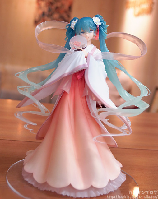 這次出自於『Character Vocal系列01 初音未來』,以「中秋明月」天上仙女風格的主題來設計,衣服原案來自中國籍插畫家Rella老師,將中秋明月版本初音有著繊細的透明感繪製出來,此次也精彩地立體化,同時在頭髮和羽衣的部分也特別以透明材質來製作,表現出夜空透明純淨的感覺,以及整體使用十分講究的上色塗裝等等,對《初音未來》有興趣的玩具人千萬別錯過了歐!