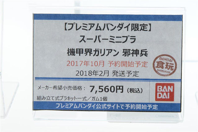 日BANDAI萬代玩具公司的食玩部門事業部新款「超級迷你盒玩」(スーパーミニプラ/SUPER MINIPLA)系列,已經推出過《機甲界加里安》動畫題材的「加里安與加里安重装改」的機體盒玩作品後,緊接著繼續推出劇中登場的敵方機體「邪神兵」的系列續作,近日於9月底的全日本模型HOBBY SHOW展覽會公開其彩色樣品。